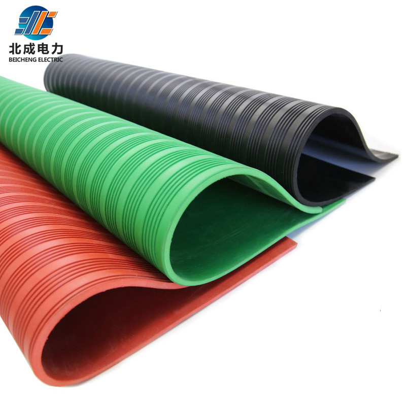絕緣膠墊主要用在配電房、配電所,用于配電設施地面的鋪設,濕度大天氣,絕緣防護工作就更加重要了